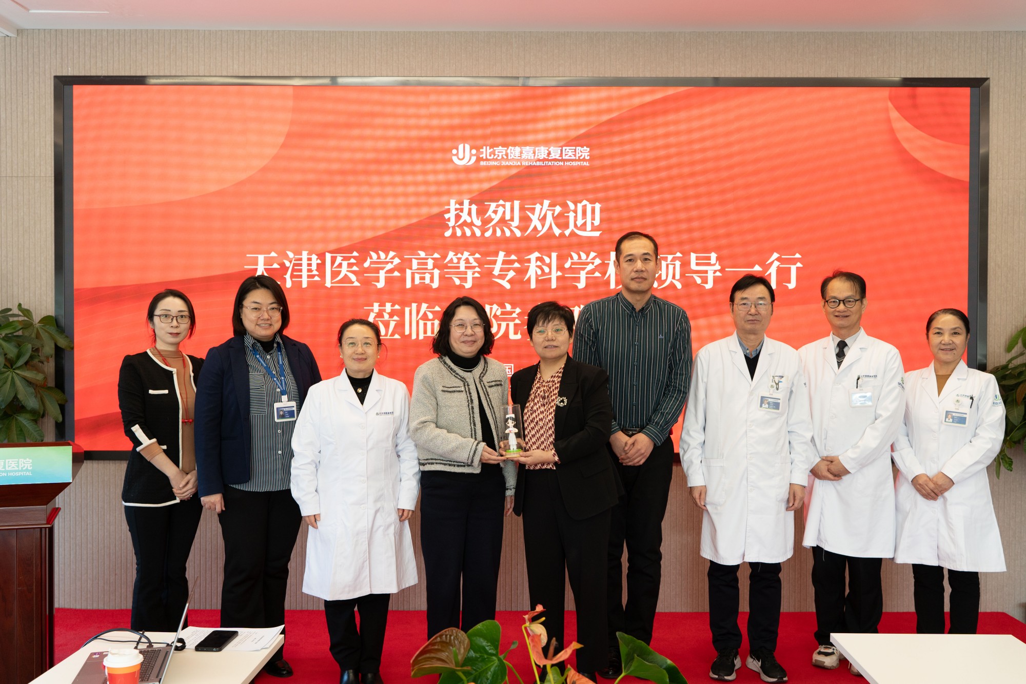 1月16日,天津医学高等专科学校医学护理学院书记商其杰、院长薛梅、王娜老师一行莅临北京健嘉康复医院参观交流。北京健嘉康复医院党支部书记兼副院长张九霞、院长助理张保朝、医学总监贾如冰及相关科室负责人热情接待并参与座谈。天津医专领导一行实地参观了医院门诊、高压氧治疗中心、医学影像中心、康复大厅等重点区域。参观过程中,学院领导对医院温馨的就医环境、先进的康复设备、优秀专业的团队配置以及创新的医疗康复护理模式给予了高度评价。 随后,双方围绕护理康复人才培养、校院合作等内容举行座谈。座谈会上,张九霞副院长对校方领导