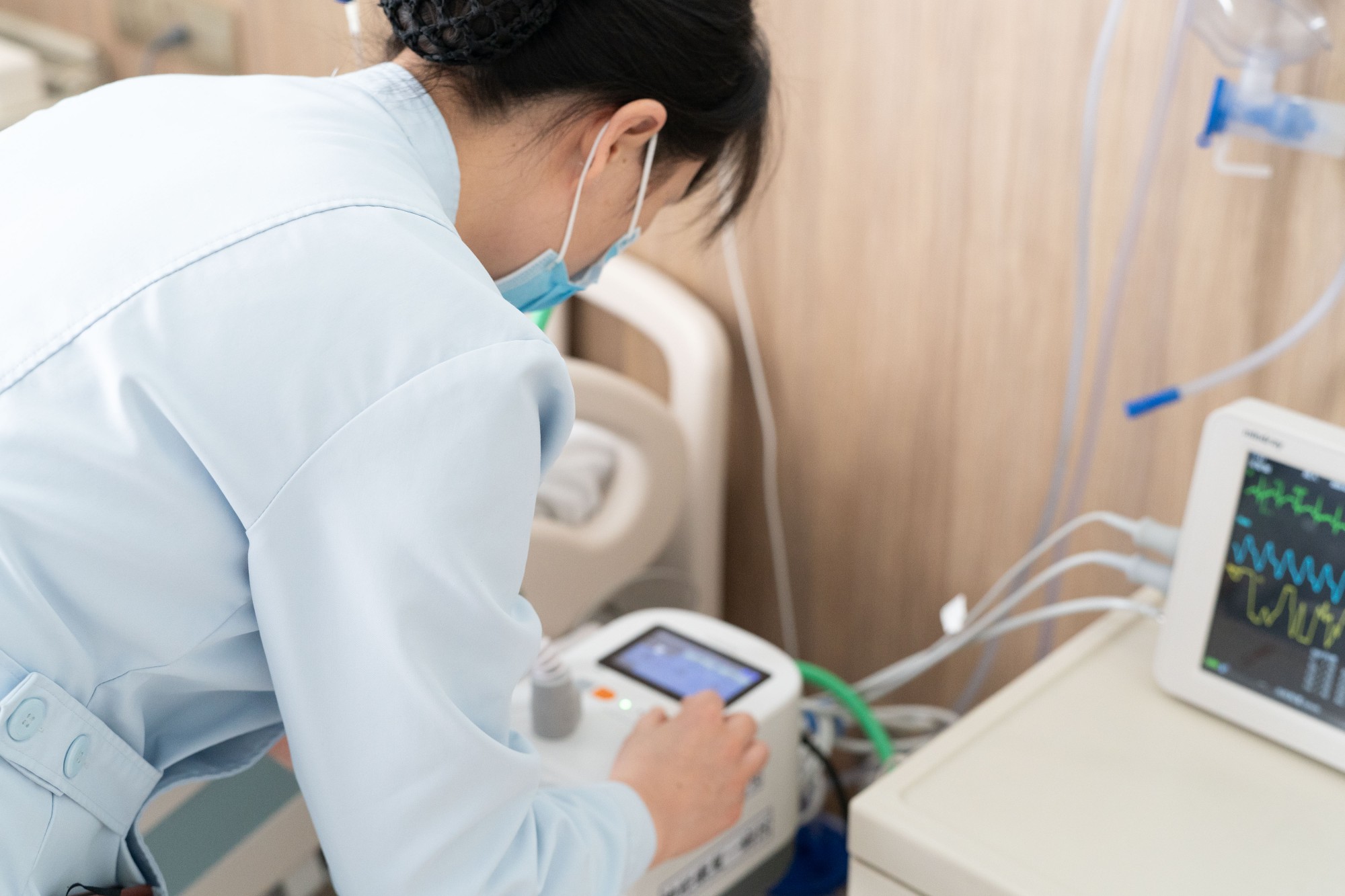 根据病情变化随时调整仪器参数,带患者行相关影像检查及化验标本采集,两小时一次翻身叩背,四小时一次雾化吸入,六小时一次震动排痰、IOE间歇鼻饲,八小时一次静脉输液,……监护仪上跳动的数字,仪器发出的滴滴警报声,都牵动着贺秋彦的神经。