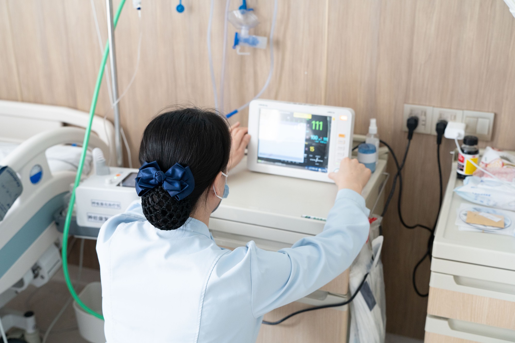 老人的肌张力极高,每次翻身都异常费力。贺秋彦身材并不高大,但同事们都说她有着“小小的身躯,大大的能量”。为老人叩背排痰,她一叩就是几百下,叩到手腕抬不起来才停下来歇一歇,然后继续。这些看似简单重复的动作,却需要极大的体力和耐心。而支撑她的,只有一个信念:让老人家肺部感染尽快好转。