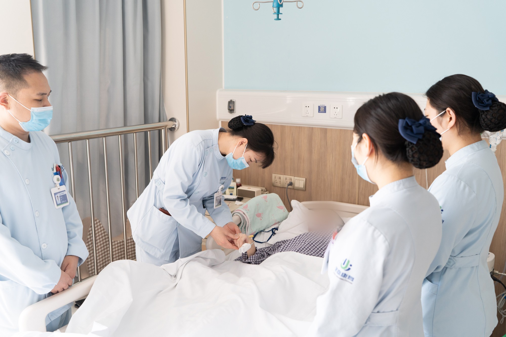 “您先休息,今天我留下来,专门照顾张爷爷。”她一边安抚家属情绪,一边走进病房,接过了照护的接力棒。
