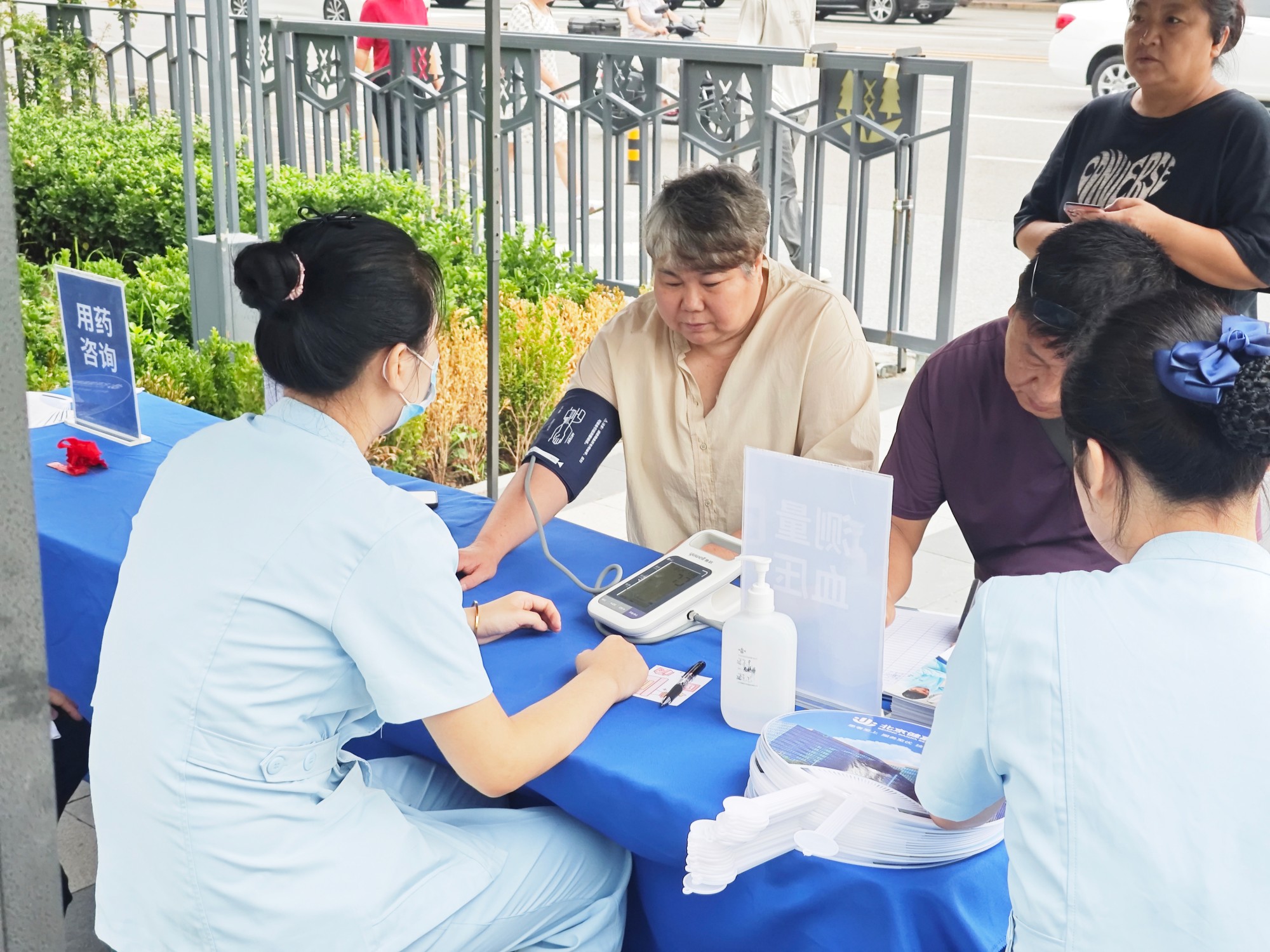 8月13日至15日,北京健嘉康复医院弘扬“敬佑生命、救死扶伤”精神,组织医技康骨干团队,开展中国医师节健康义诊活动。医护人员热情细致地为社区居民提供免费血压测量、健康报告解读以及咨询服务。除了提供专业的咨询与检查,义诊团队更将细致关怀融入服务。时值酷暑,医院特别为居民准备清凉扇,药剂科备上清热解暑的酸梅汤代茶饮,供居民免费取用。为更好地满足居民后续健康需求,义诊现场还提供了丰富的健康福利。中医康复中心为有需要的居民赠送免费中医问诊券及中医热灸调理体验卡,让居民有机会体验中医的独特魅力。运动康复中心提供免费